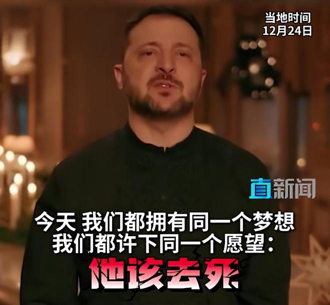 视频中,泽连斯基身着传统绣花衬衫和标志性黑色外套,站在节日灯光映照的背景板前发表讲话。他表示:“今天,我们都拥有同一个梦想,我们都许下同一个愿望:他该去死。每个人或许都会在心中这么想。”英国《每日邮报》指出,致辞里的“他”毫无疑问就是俄罗斯总统普京。