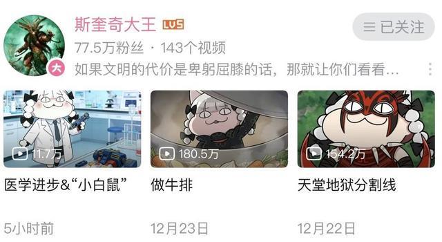 截至12月30日10时45分,“斯奎奇大王”B站“粉丝”77.5万,较12月29日18时增加2.7万