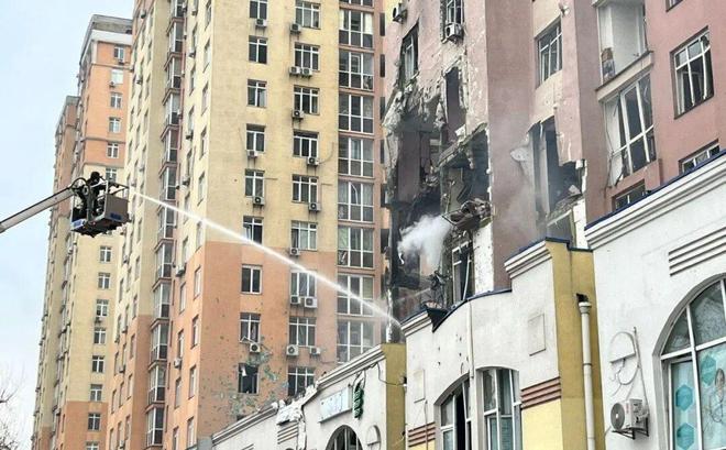 俄军对乌克兰首都基辅等多地发起大规模空袭,图为起火的建筑