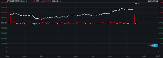 值得注意的是,周五俄罗斯股市盘中直线拉升,截至发稿,俄罗斯RTS指数涨幅超过3%。
