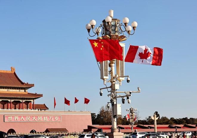 1月14日至17日,加拿大总理卡尼应邀访华,图为中国和加拿大国旗(资料图)