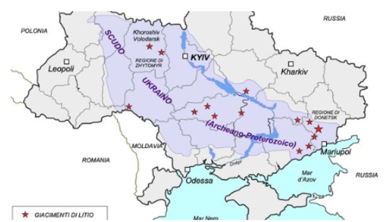 乌克兰地质学家协会通过星号标注了已发现的锂资源分布