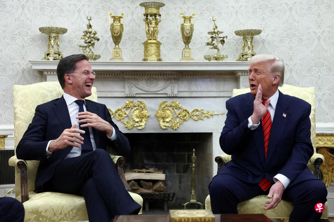 3月13日,北大西洋公约组织秘书长吕特(左)到白宫椭圆形办公室与美国总统特朗普会谈 路透社