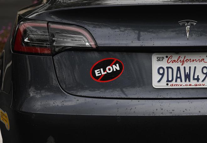 当地时间3月12日,美国加州,一辆特斯拉汽车上贴有抗议马斯克的贴纸 图据视觉中国丹麦养老基金Akademiker Pen... 当地时间3月12日,美国加州,一辆特斯拉汽车上贴有抗议马斯克的贴纸 图据视觉中国