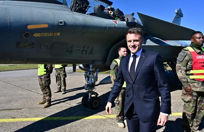 当地时间2025年3月18日,法国上索恩省,法国总统马克龙访问位于吕克塞伊尔-莱-班的116号空军基地 图据视觉中国