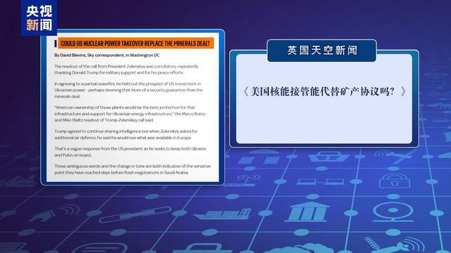 英国天空新闻发表评论文章,题为《美国核能接管能代替矿产协议吗?》。