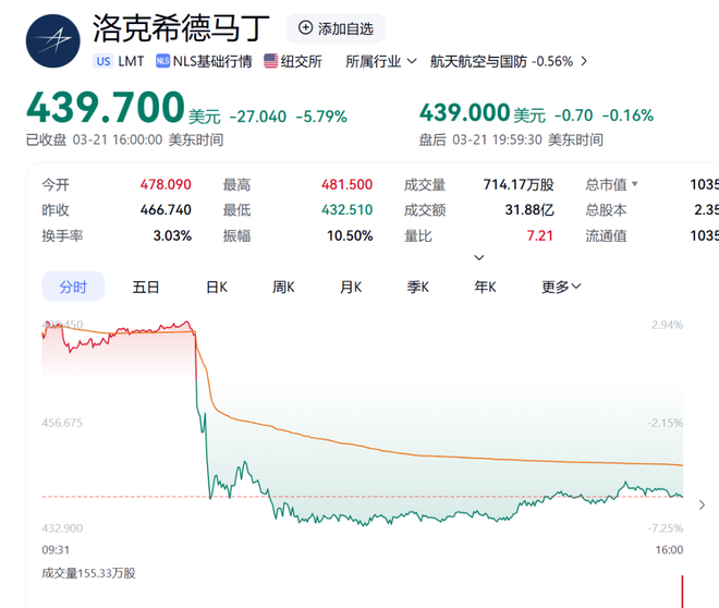 白宫官宣前,有消息称洛克希德-马丁和波音中的一家,能拿下这份赢家通吃的合同。洛克希德-马丁一度涨超3%,白宫官宣后股价跌超7%,收盘跌幅收窄至5.79%,目前总市值1035亿美元。