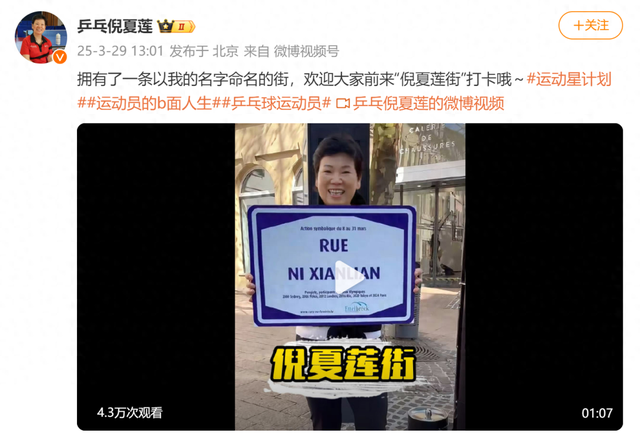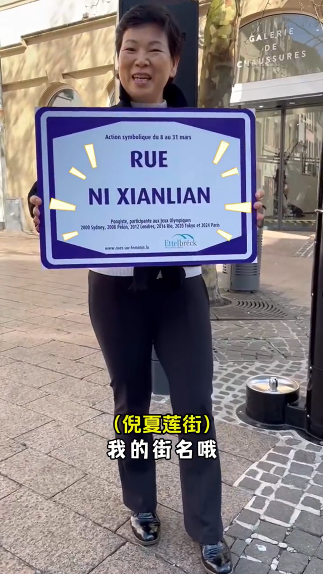 3月29日,有着“乒乓奶奶”之称、现年61岁的卢森堡籍华裔乒乓球运动员倪夏莲在个人社媒发布视频称:卢森堡市政府以其名字命... 3月29日,有着“乒乓奶奶”之称、现年61岁的卢森堡籍华裔乒乓球运动员倪夏莲在个人社媒发布视频称:卢森堡市政府以其名字命名的了一条街,她感到十分荣幸,欢迎大家来“倪夏莲街”打卡。