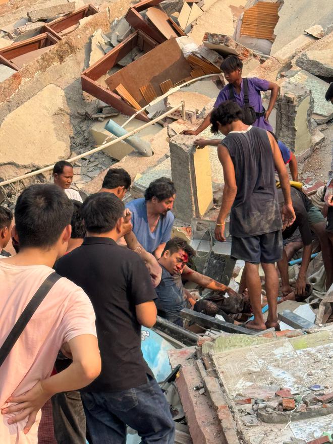 3月28日中午,缅甸曼德勒市一栋四层的建筑里,高中生优米正在这里补习,手里是尚未完成的试卷。突然间,她感到整栋楼都在晃,慌乱与惊恐之中,她躲到了桌子下,直到黑暗的半分钟过去。