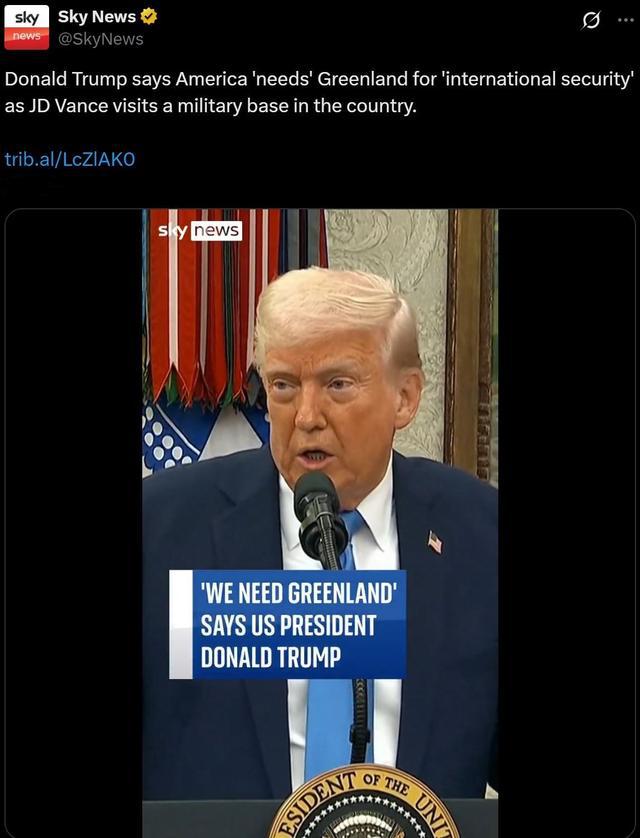 在万斯夫妇访问格陵兰岛同一天,岛上四个政党签署联合执政协议,组成新一届自治政府。新上任的自治政府总理尼尔森表示,自己心向丹麦。有媒体评论称,在特朗普持续的“接管威胁”下,格陵兰岛各党政治团结决心表露无遗。但是,这也激发特朗普宣称“可能动用军事手段”。