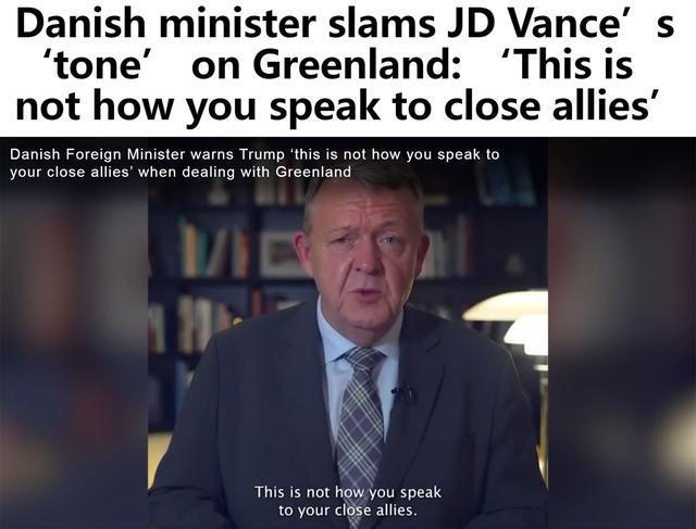 丹麦外交大臣拉斯穆森29日在社交媒体上发表视频讲话,批评万斯有关格陵兰岛表态的“调调”。