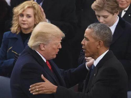 图为特朗普与奥巴马交谈(资料图)