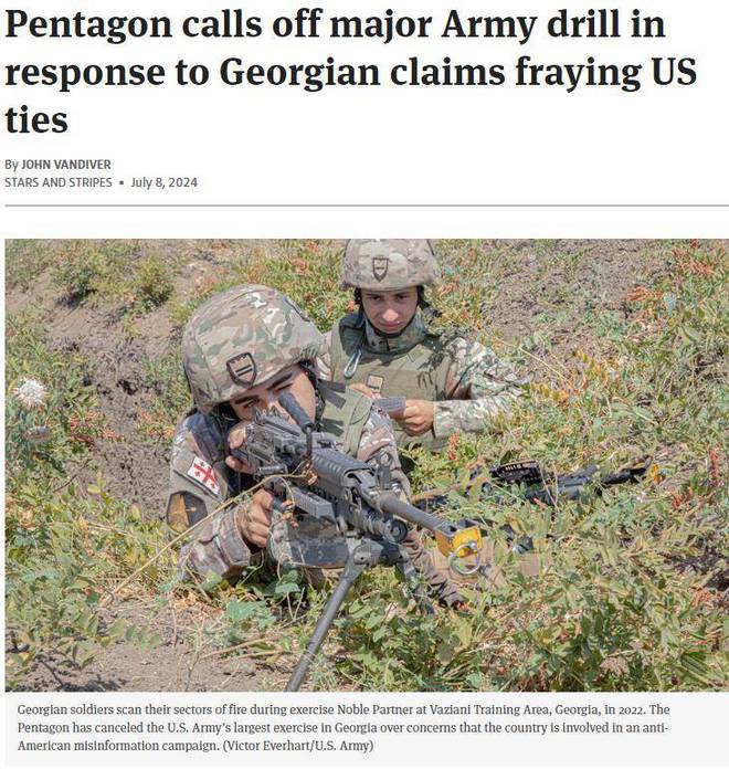 综合美军《星条旗报》和美国军事网站“任务与目标”(Task and Purpose)7月8日报道,格鲁吉亚执政党表示,美国等西方国家对该国施压,要求对俄罗斯开战,开辟所谓“第二战线”。为此,美方宣布取消原定本月在格鲁吉亚举行的大规模军事演习。