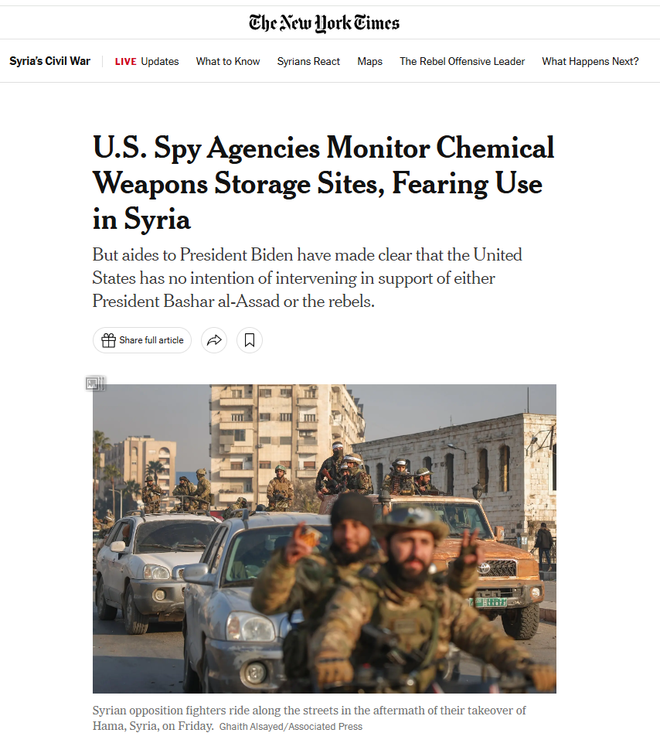 阿萨德倒台 美以担心叙数量庞大的武器流入"恐怖组织"