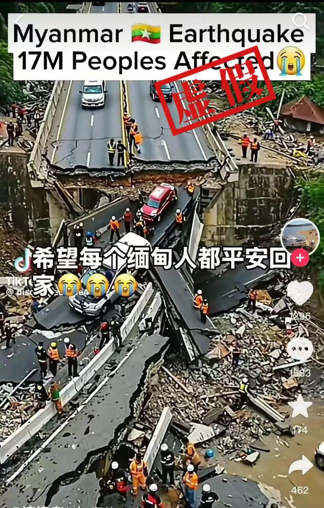 3月28日14时20分,缅甸中部发生7.9级强震,震源深度30公里。随后,社交平台上流传一些据传是“航拍地震现场画面”。