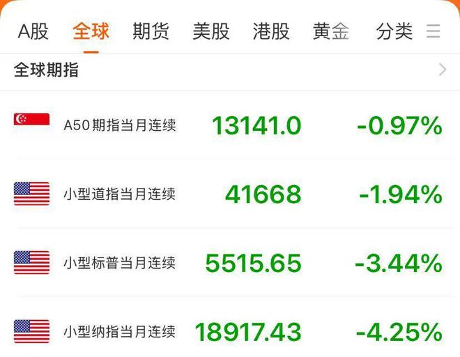 截至发稿,纳指期货跌幅扩大至4.25%,标普500指数期货跌超3%,道指期货跌1.94%。