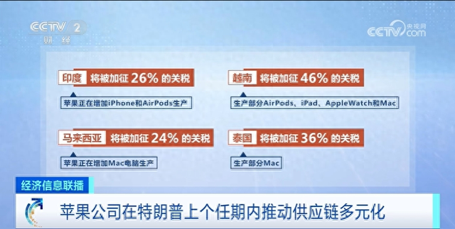 事实上,正是在特朗普第一个任期内,苹果公司开始推动供应链多元化,包括将部分手机和耳机生产转移至印度,将部分耳机、手表和电脑生产转移至越南,并在马来西亚和泰国增设电脑产品生产线。但特朗普政府计划对东南亚国家普遍征收高额“对等关税”,无疑将重创苹果公司的供应链。