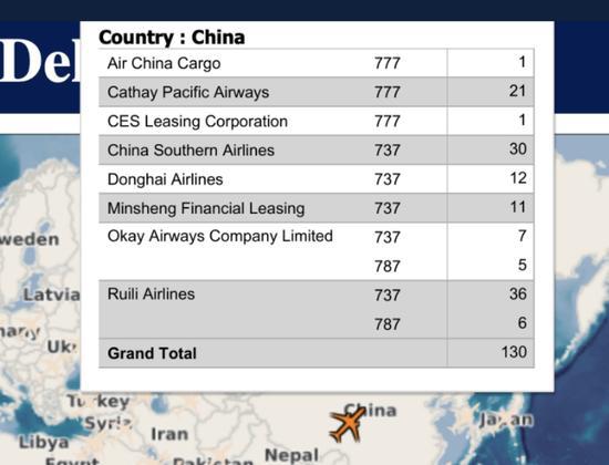 波音官网的信息显示,截至2025年3月31日,波音在中国还有130架飞机等待交付