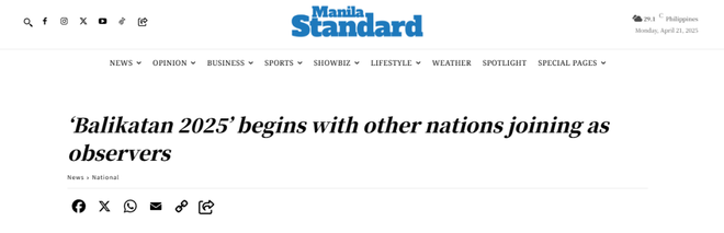 图为菲律宾媒体报道截图