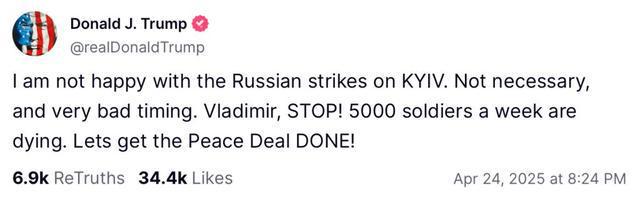 “弗拉基米尔,住手!”特朗普罕见公开谴责普京!俄罗斯提出停战条件