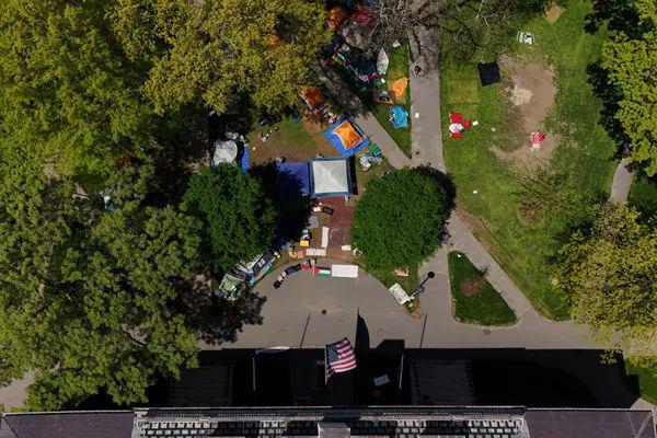 当地时间2024年5月13日,美国马萨诸塞州剑桥市,巴以冲突持续,亲巴勒斯坦示威者在哈佛大学校园内设立抗议营地
