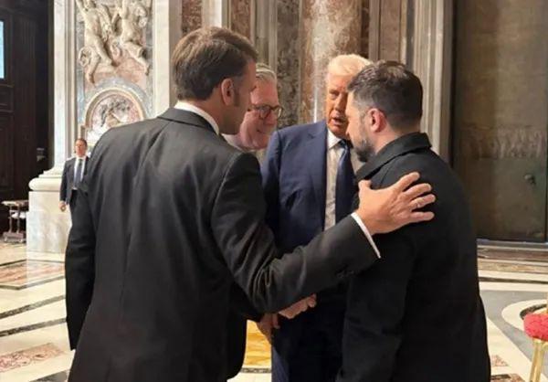 4月26日,美英法乌领导人在出席教皇葬礼期间交谈 社交媒体