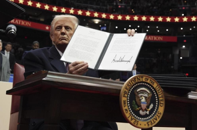 美国总统特朗普1月20日签署行政令,宣布美国将再次退出旨在应对气候变化的《巴黎协定》 图:央广网