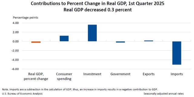 美国商务部经济分析局发布2025年一季度美国GDP受各分项影响数据