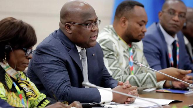 刚果(金)总统齐塞克迪(左二)称愿意为美国提供关键的矿产资源
