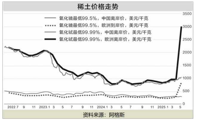 阿格斯有色金属分析团队负责人表示,因为中国4月份的稀土出口管制,切断了海外稀土供应,而海外稀土用户库存又比较有限,有很强的补库存需求。