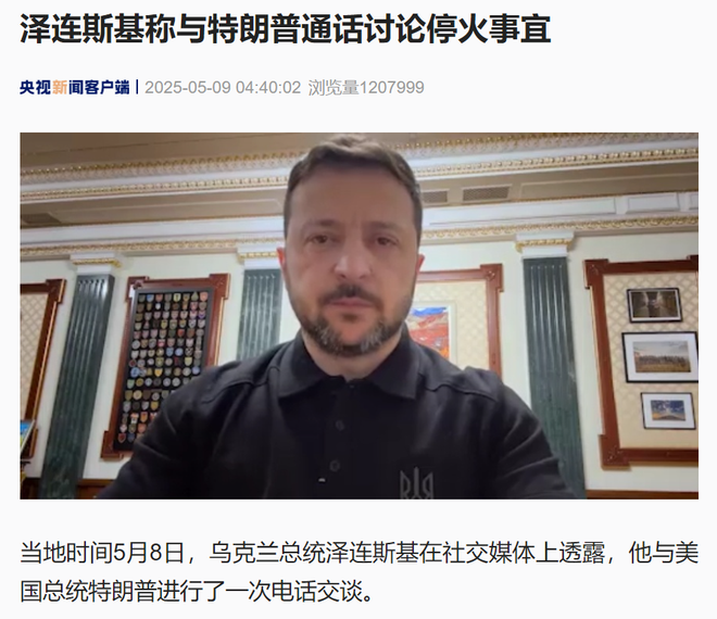 当地时间5月8日,乌克兰总统泽连斯基在社交媒体上透露,他与美国总统特朗普进行了一次电话交谈。