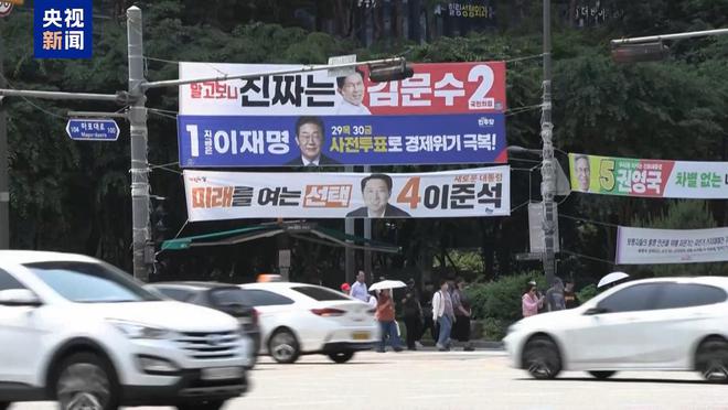 韩国6月3日举行大选,图为街头的候选人拉票横幅(央视新闻)新京报讯 据中国驻韩国大使馆消息,韩国将于6月3日举行大选,提... 韩国6月3日举行大选,图为街头的候选人拉票横幅(央视新闻)