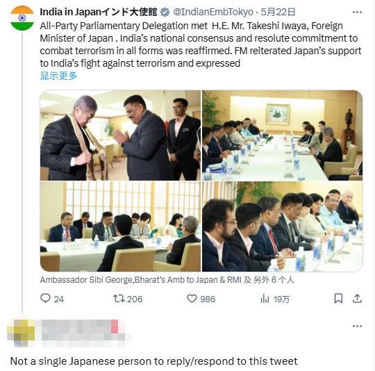 有网民就在印度大使馆的社交账号下留言“补刀”:“评论区里没有一个日本人回复,也没人对这些帖文作出反应。”