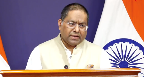 5月29日,印度外交部发言人兰迪尔·贾伊斯瓦尔在新闻发布会上发表讲话 图源:印媒