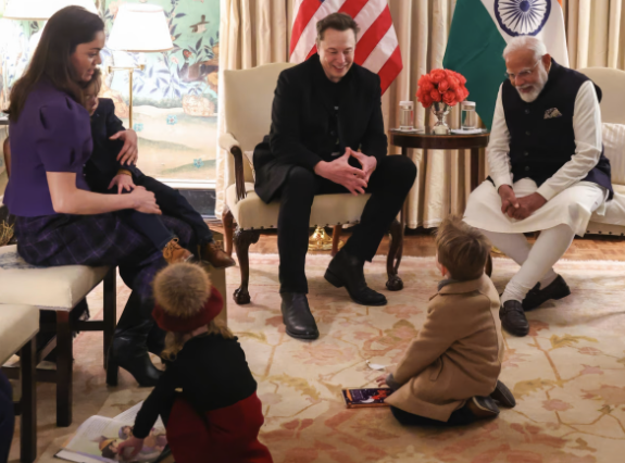 今年2月,马斯克、泽利斯带着孩子会见印度总理莫迪