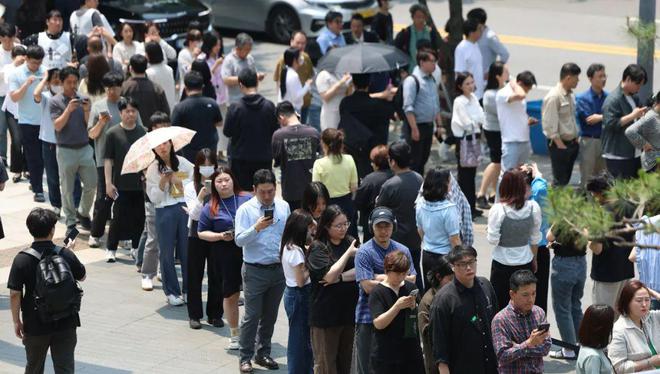 当地时间2025年5月29日,韩国首尔,韩国总统选举提前投票举行,选民在排队进行投票 图/IC photo