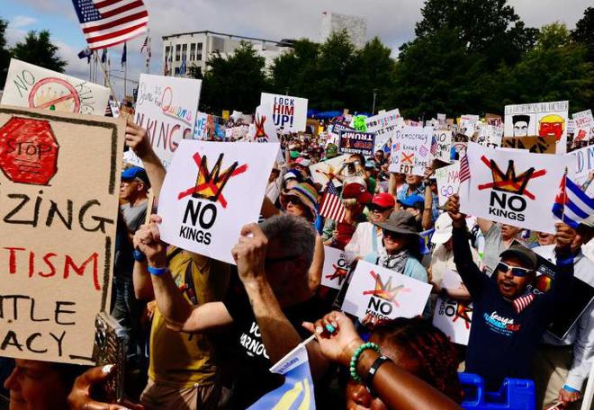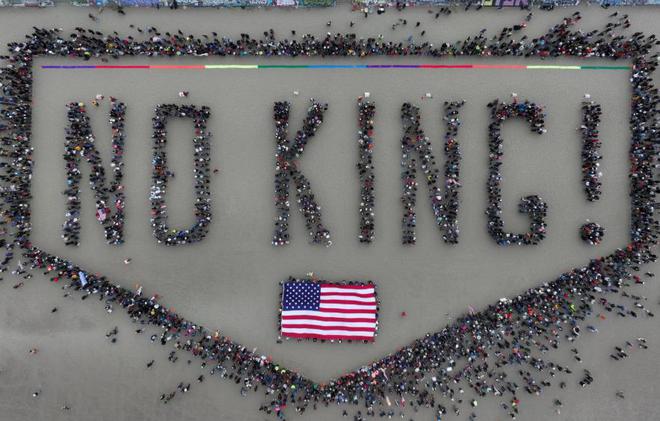 报道称,全美多地当天组织一场以“不做国王”为主题的抗议活动。这是自今年1月特朗普重返总统职位以来,针对其执政的最大规模抗议行动。