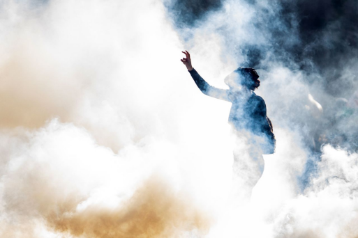 6月14日,一些抗议者向警方投掷石头等物品,警方则释放刺激性烟雾驱散人群 图源:美媒报道配图