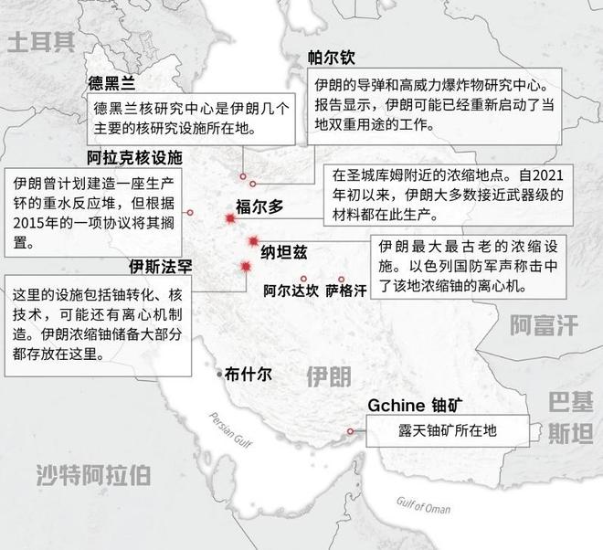 以色列此次空袭将目标对准伊朗的3个关键核设施,分别为纳坦兹(Natanz)、伊斯法罕(Isfahan)和福尔道(Fordow)。联合国原子能机构14日称,位于伊朗北部库姆省的福尔道燃料浓缩厂和中央省在建的洪达卜重水反应堆现场均未发现损坏。