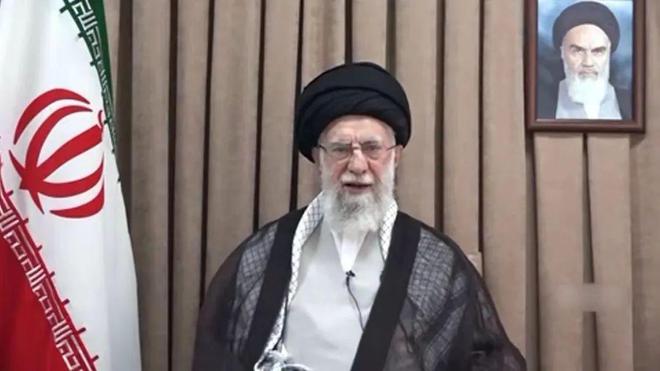 当地时间18日,伊朗国家电视台发布的哈梅内伊讲话视频截图