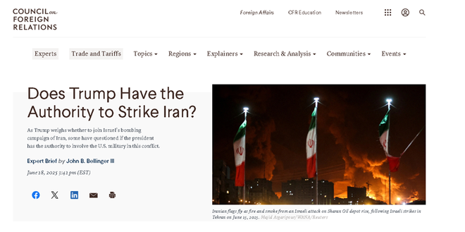 只不过,在这位专家看来,从美洲大陆大老远地跑到中东轰炸伊朗的美国,很难让人认为这是美国在遭受“即将到来”的军事袭击。他还表示,即便美国政府拿“集体防卫权”辩解,倘若以色列起初对伊朗发动袭击的做法在国际法层面存在问题,那么美国就也会面临违反国际法的风险。
