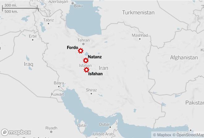 特朗普称美军打击了伊朗三处核设施,图为位置示意图