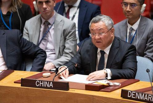 图为中国常驻联合国代表傅聪发言(联合国网站)