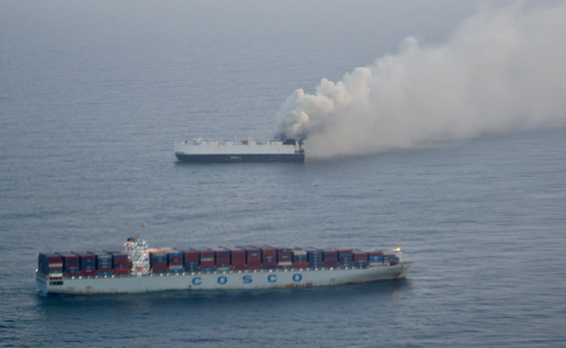 这起事故始于当地时间6月3日,当时该船正驶往墨西哥拉萨罗卡德纳斯,途中发现载有电动汽车的甲板冒出浓烟。尽管船员努力部署紧急消防方案并启动船上灭火系统,但火势依然猛烈,迫使22名船员弃船逃生。他们经救生艇安全撤离,并被路过的商船“中远希腊号”救起。