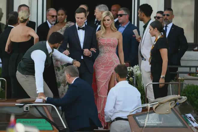 6月26日晚,一场欢迎派对在威尼斯圣母奥尔托教堂(Madonna dell'Orto)旁的私人回廊举行。嘉宾们纷纷乘坐“贡多拉”抵达派对现场。出于安全考虑,当地警方在该地区部署了大量警力,整条运河都被送宾客的船只堵塞。