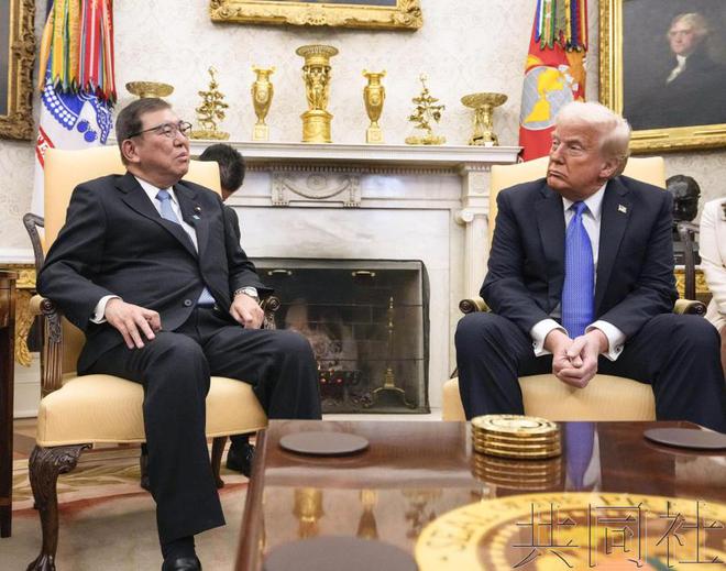 图为2月在白宫举行会谈的日本首相石破茂(左)和美国总统特朗普。