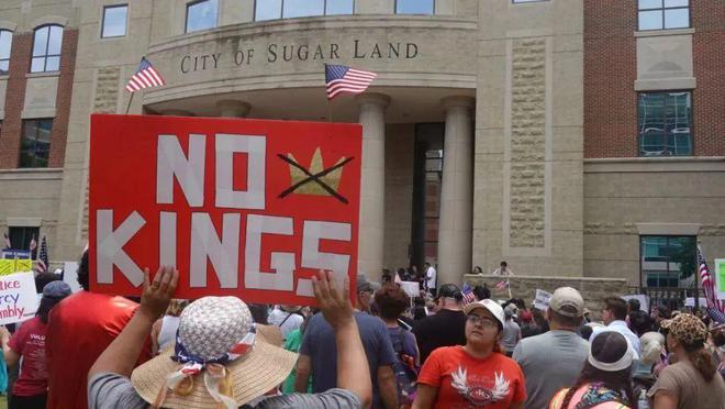 6月14日,在美国得克萨斯州休斯敦,人们参加“不要国王”抗议活动 图:新华社