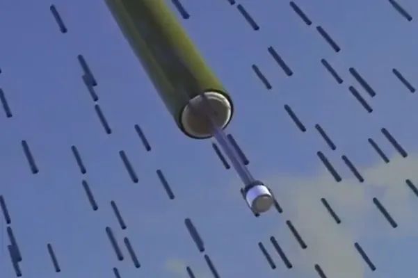 视频画面显示,导电纤维战斗部释放出90枚子弹药