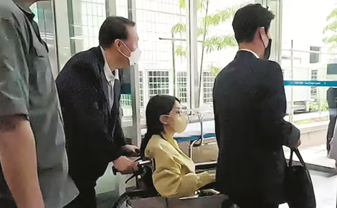 金建希的健康状况也在近日曝光。与尹家关系密切的律师徐正旭7月10日接受采访时透露,金建希不仅得了抑郁症,而且有低血压,体重也下降了很多。由于低血压导致的头晕,所以金建希住院时需要坐轮椅。