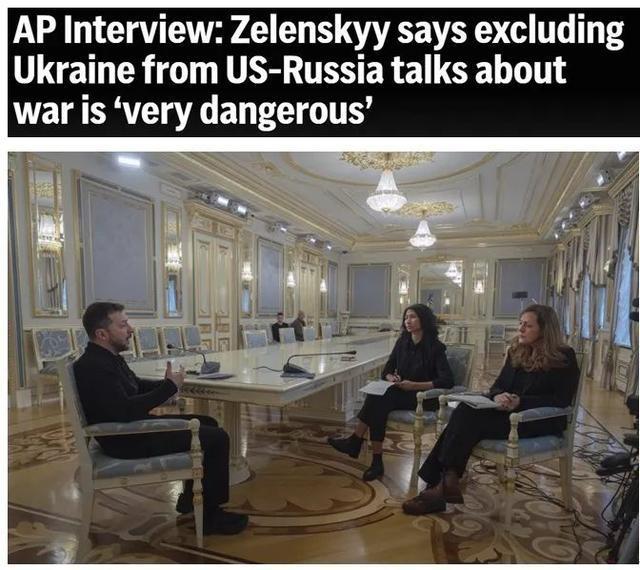 泽连斯基在接受美联社采访时称,将乌克兰排除在谈判之外“非常危险”。